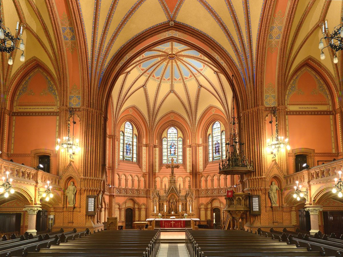 Lieben Sie farbenprächtige Sakralarchitektur aus der Zeit des Kaiserreiches? Dann feiern Sie sonntags mit uns Gottesdienst oder besuchen Sie eines unserer Konzerte und kommen Sie in einer der schönsten Kirchen Zwickaus ins Staunen!